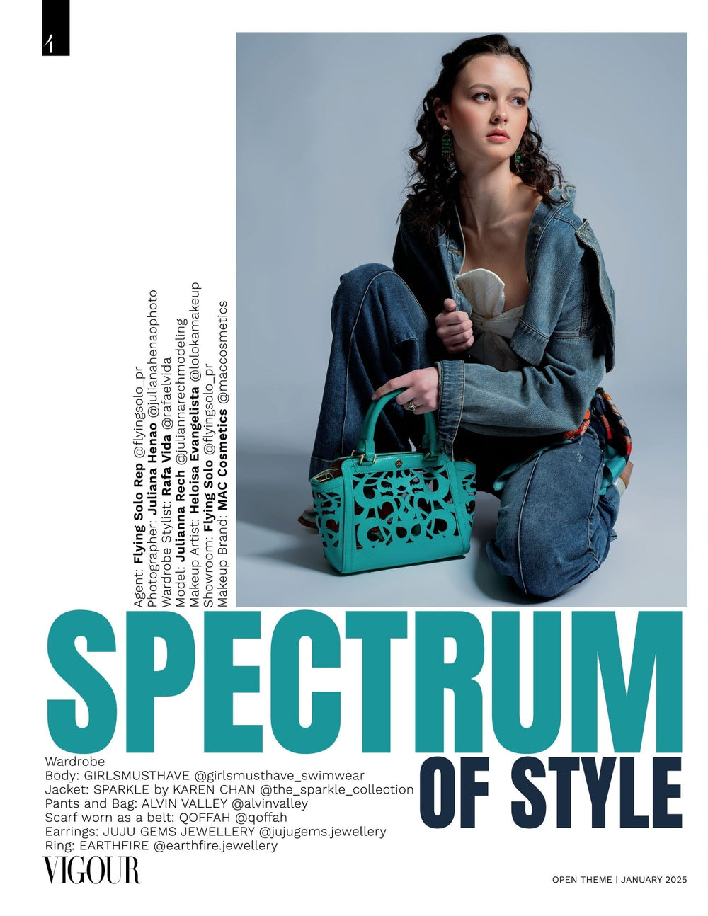 Our signature【BOMBER】red-white-blue eco-denim jean jacket has been featured in the Jan 2025 edition of VIGOUR Magazine, one of Canada-based top fashion and beauty magazines.