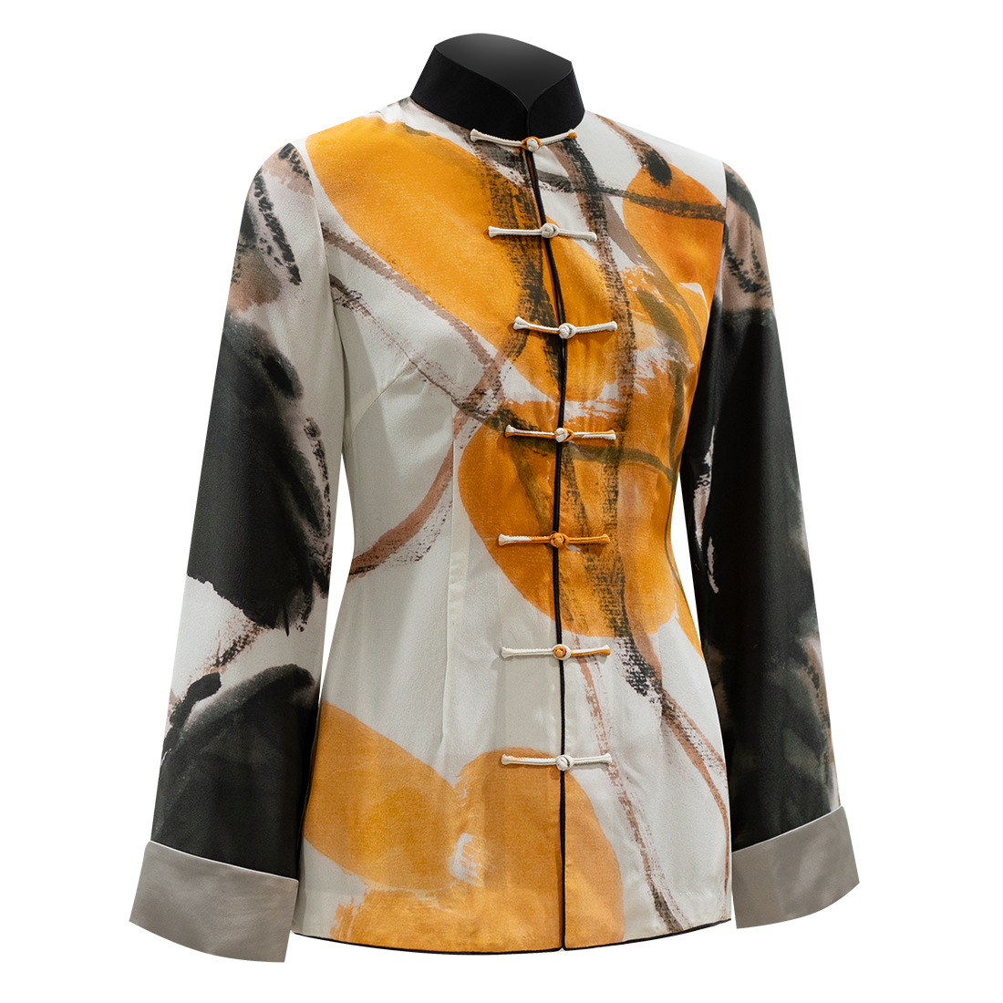 For silk cheongsams and Tang jackets, upgrade to leather Mandarin collar is available at $1500 upon customer’s request.