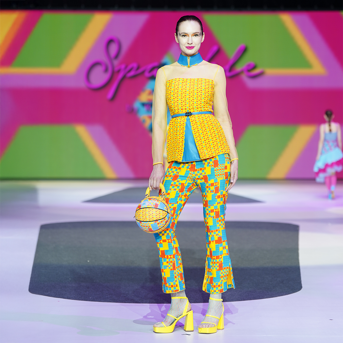 - Color: Yellow, electric blue, coral