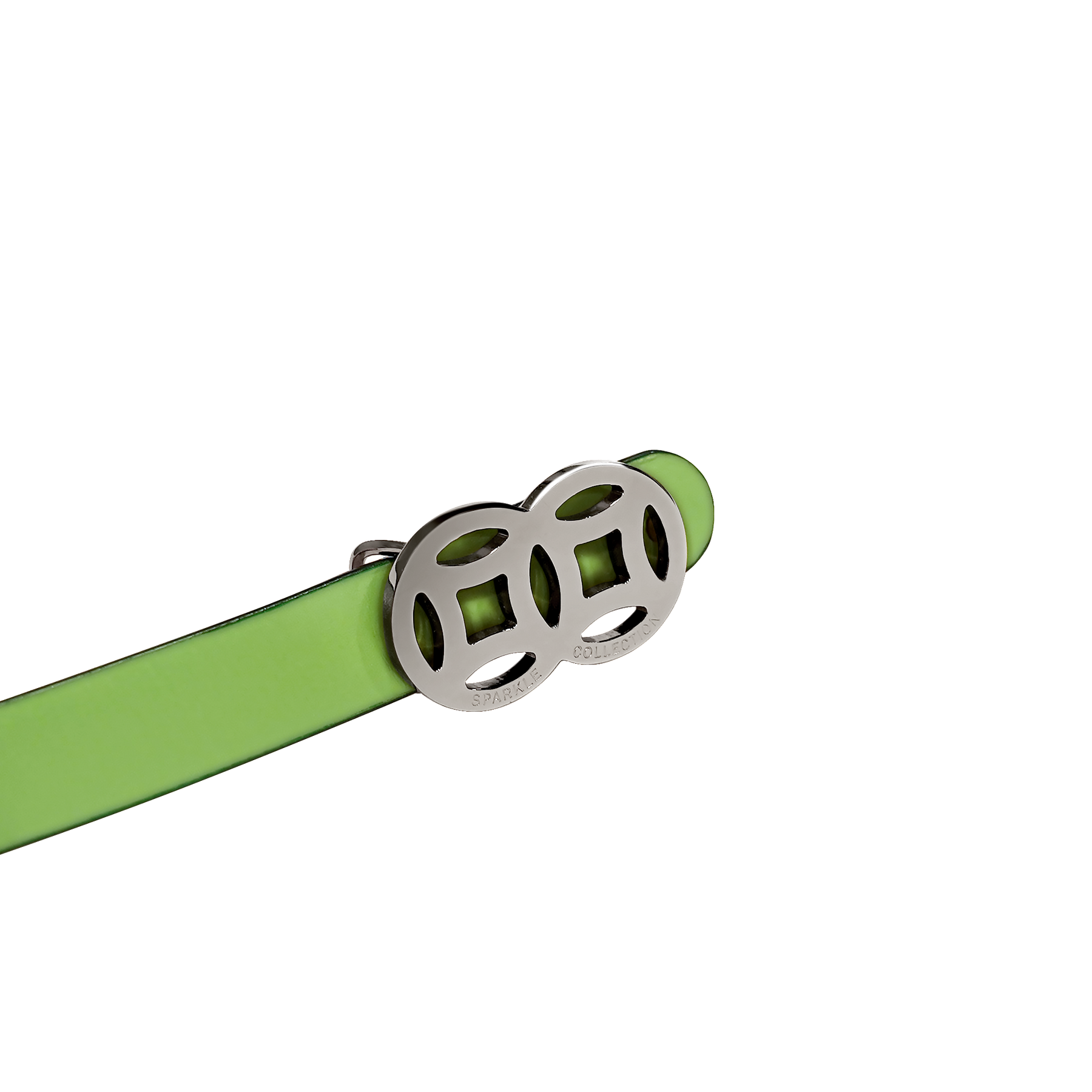 This green soft leather belt with metal buckle is the perfect accessory for any cheongsam, blouse, dress or coat.