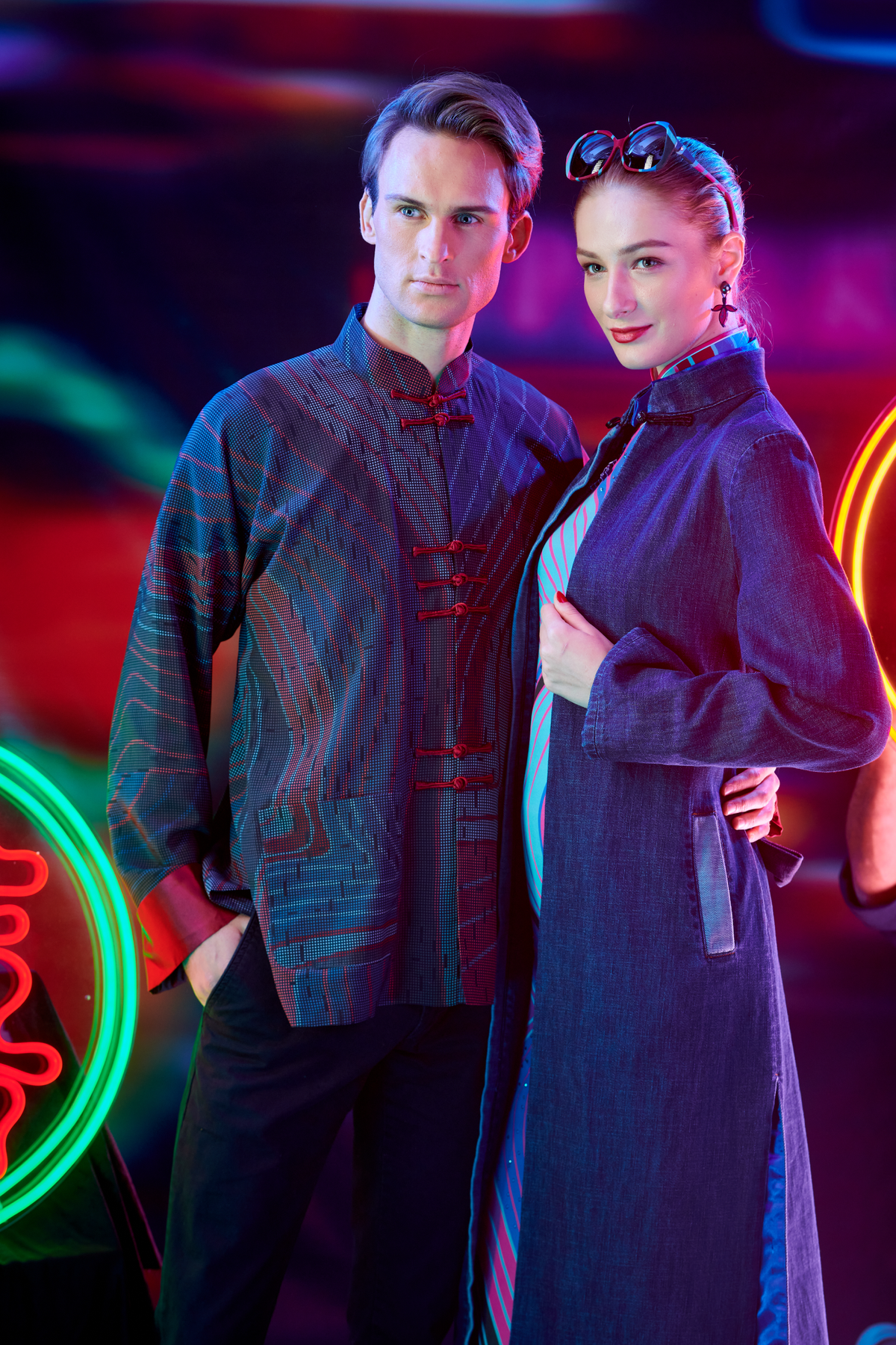 100% silk tang Jacket in a pattern inspired by Hong Kong’s gentle slopes and islands, turning the isolines of contour maps into wavy lines and lively patterns that signify hills and oceans. Knot buttons, lining and cuffs in bold red add a dash of vivacity to this hip jacket.