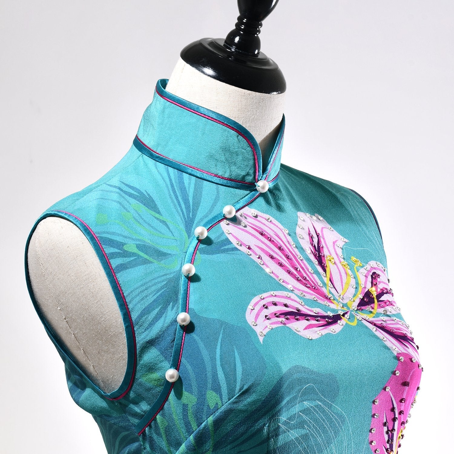 Name:【BAUHINIA】100% Silk Crystal Cheongsam (Sleeveless / Regular Fit)