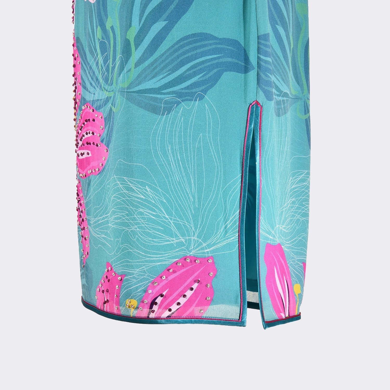 Grace and elegance defines THE SPARKLE COLLECTION by german pool by german pool, this Cheongsam is an excellent addition to the “Bauhinia Series”.  Made with 100% silk hand-stitched that emphasizes the beauty of traditional Chinese culture.  The combination of Austrian Swarovski® Crystals and professional hand-stitching, the dress flows and shimmers with feminine confidence.  It is a reflection of the elegant and beautiful female figure, adding vibrant and lively colors with the beautiful Bauhinia pattern, it is the perfect interpretation of retro style fashion.