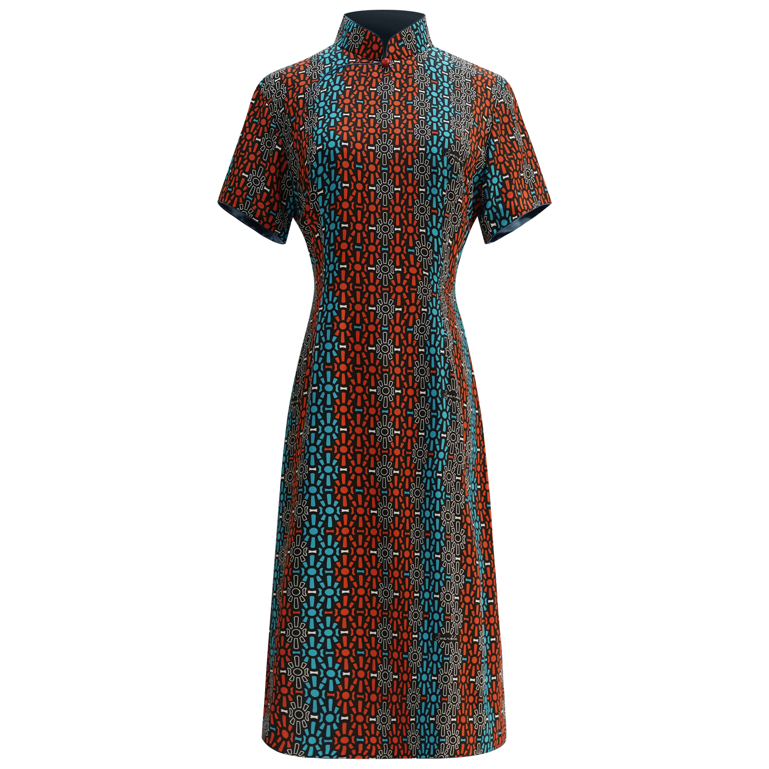 - Name: 【GATE CARVING】100% Silk Cheongsam(Short Sleeve / Regular Fit) (紅白藍)