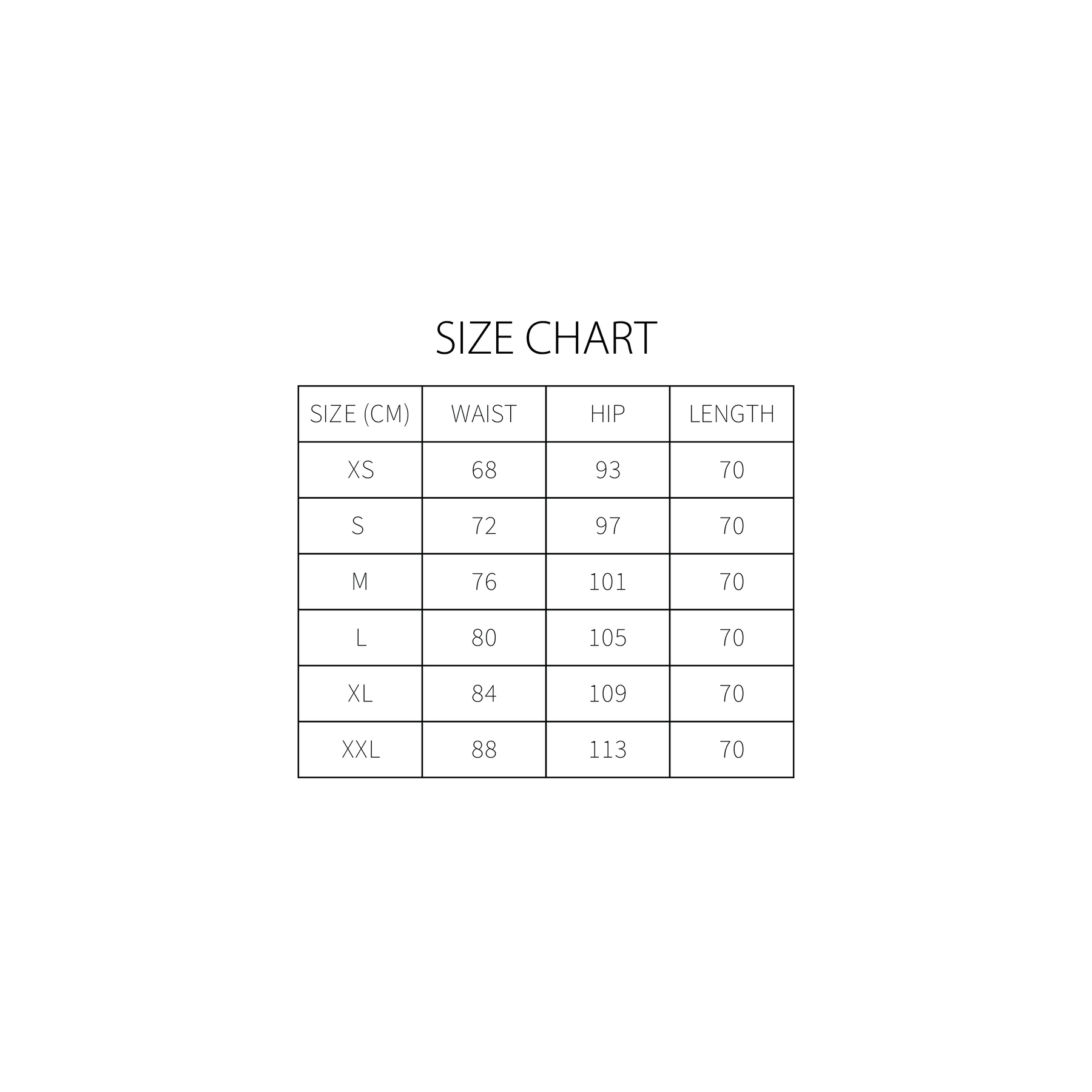 As each garment is made purposefully by hand, difference in measurements of bust, waist and hip may range from 1-3 cm.