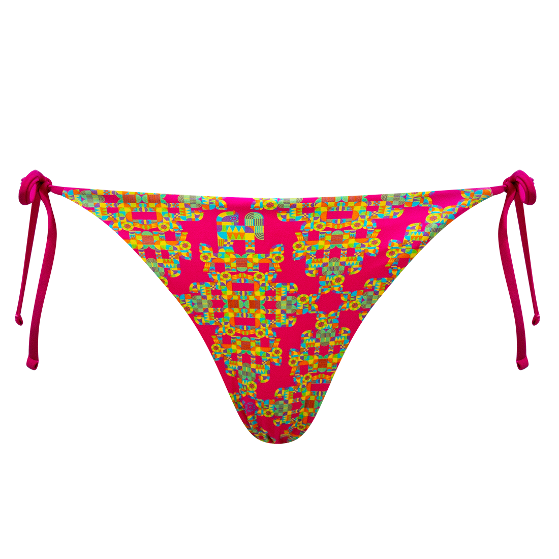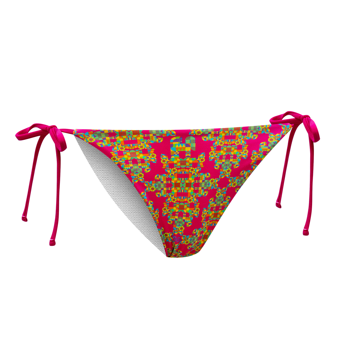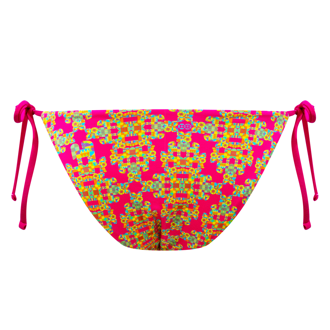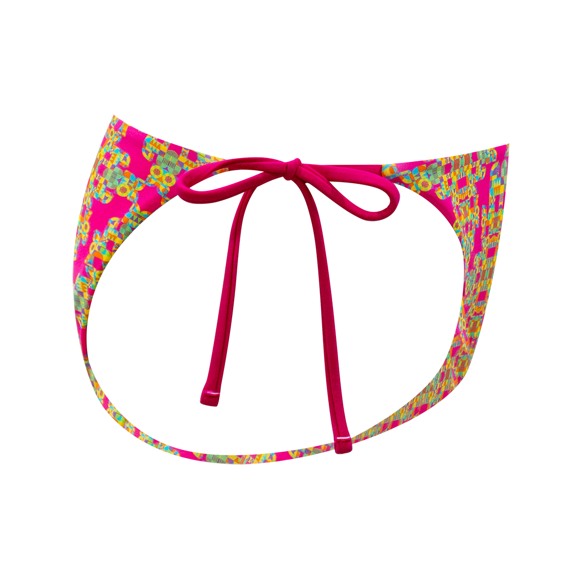 Strapless bandeau style bikini in fuchsia adorned with kaleidoscopic horses