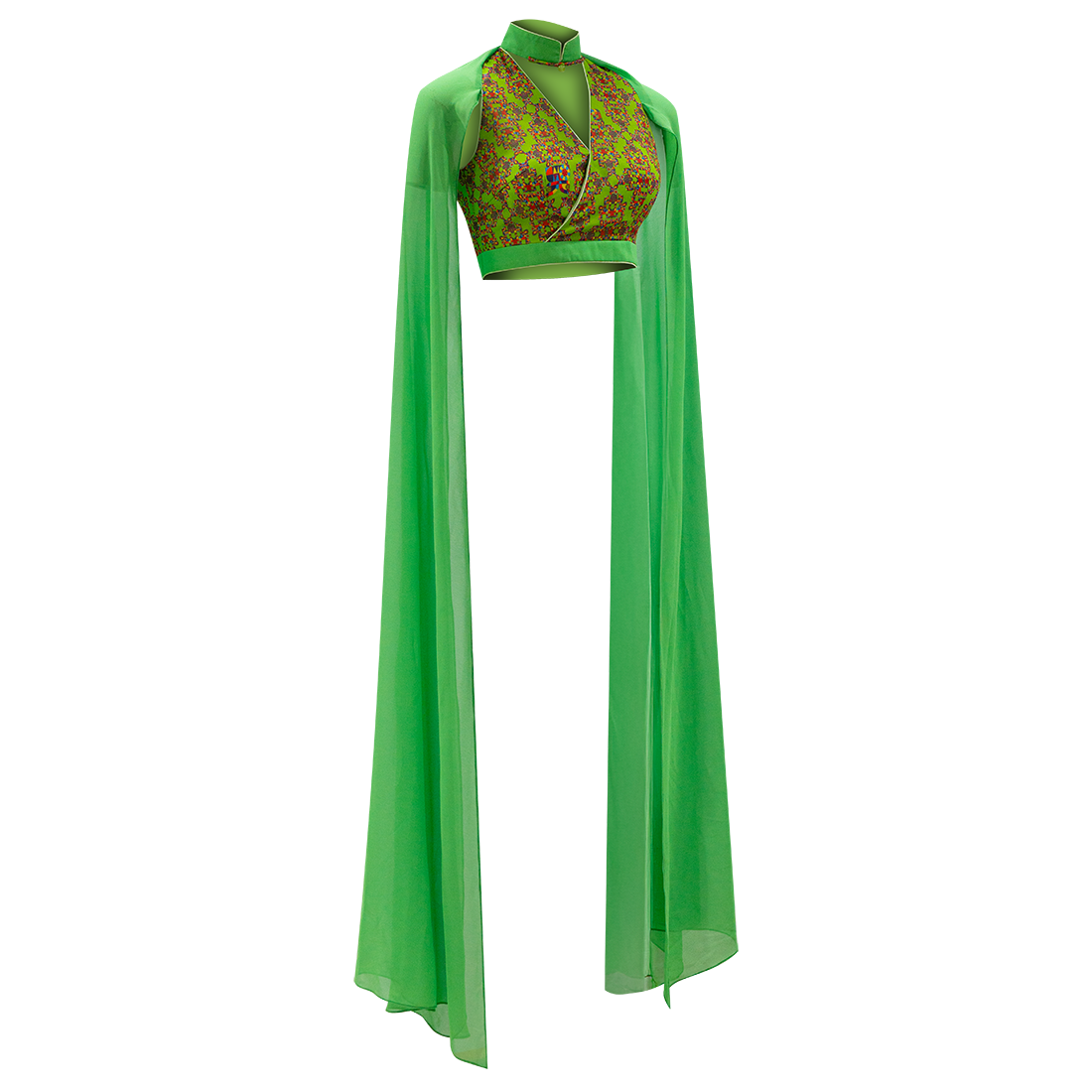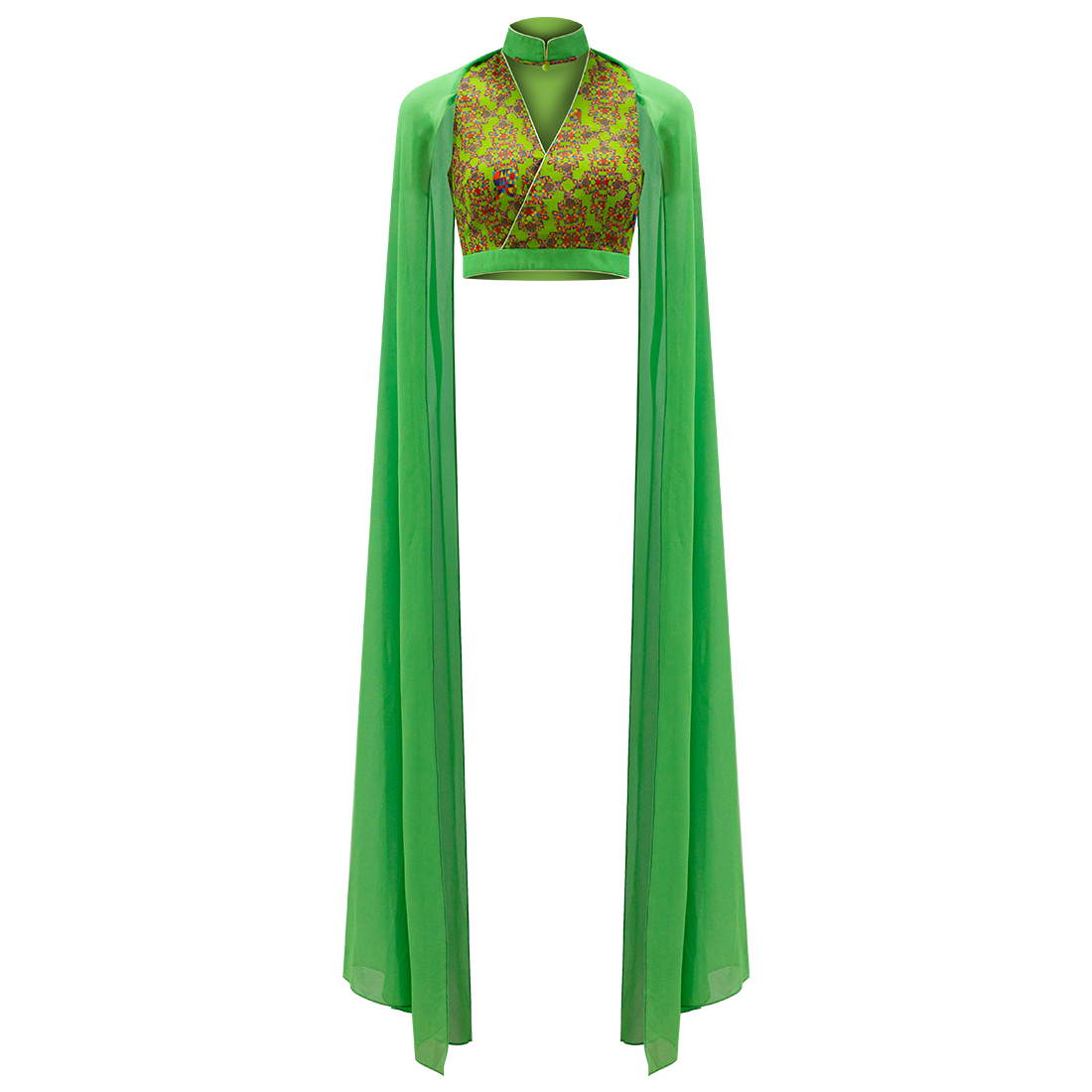 Name:【HORSE COUPLE】Green Chiffon Modern Cheongsam Cropped Top (Regular Fit)