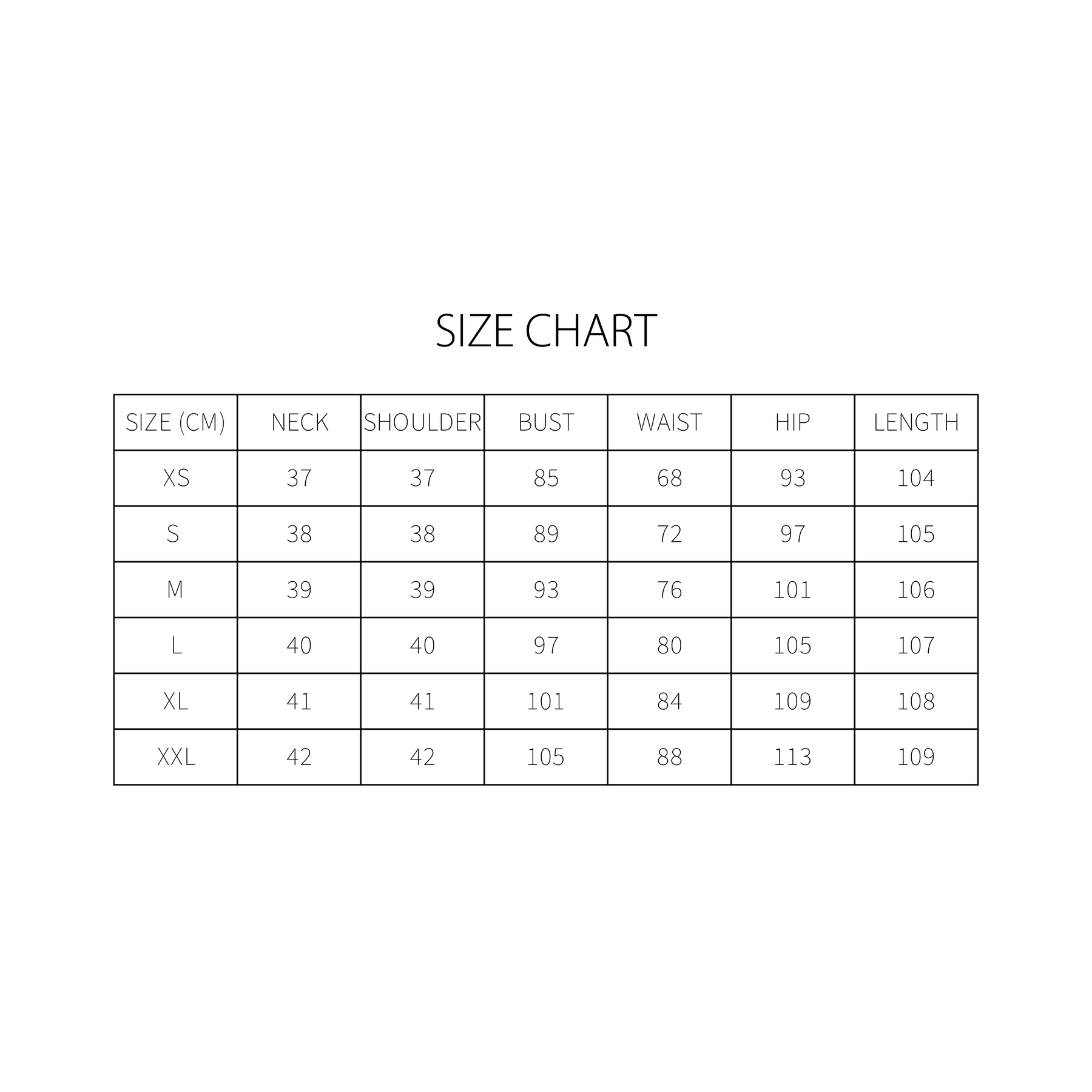 As each garment is made purposefully by hand, difference in measurements of bust, waist and hip may range from 1-3 cm.