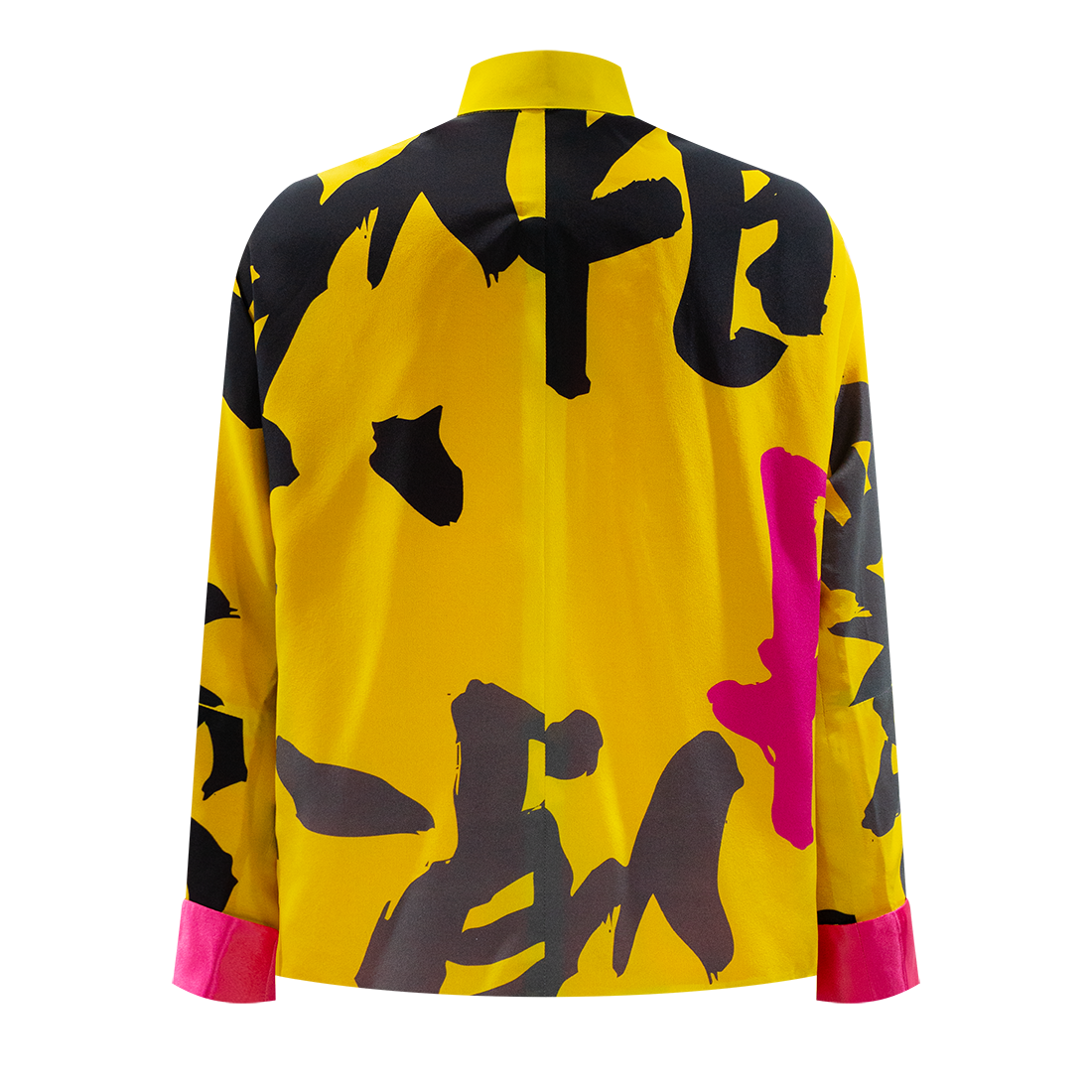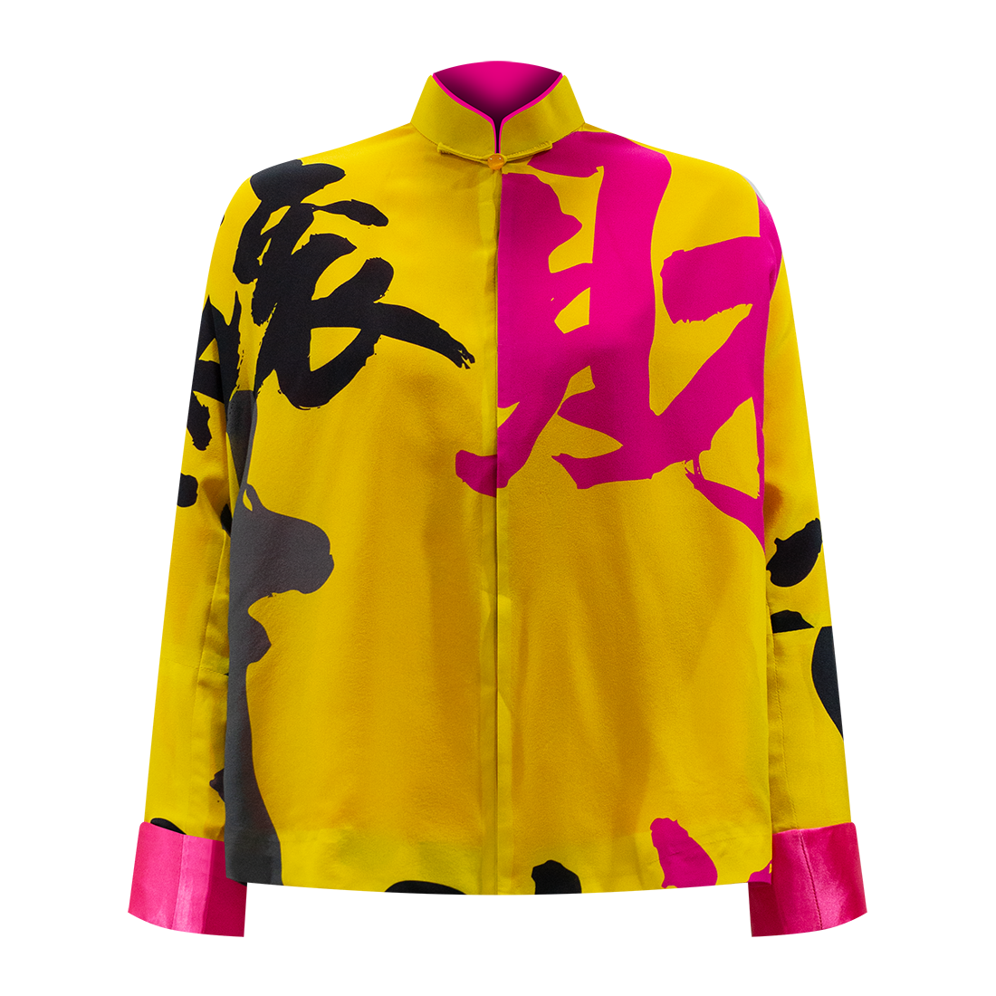 The spectacular calligraphy on this fabric pattern is done by the chairman of HK Calligraphy Association Master Michael Fung exclusively for our brand, and plays on the popular Chinese lucky phrase “Riches Rolling In財源滾滾”. The name of the piece “Unbridled Wealth” plays on the image of an unbridled steed running fast and freely with no boundaries, wishing you wealth of no boundary.